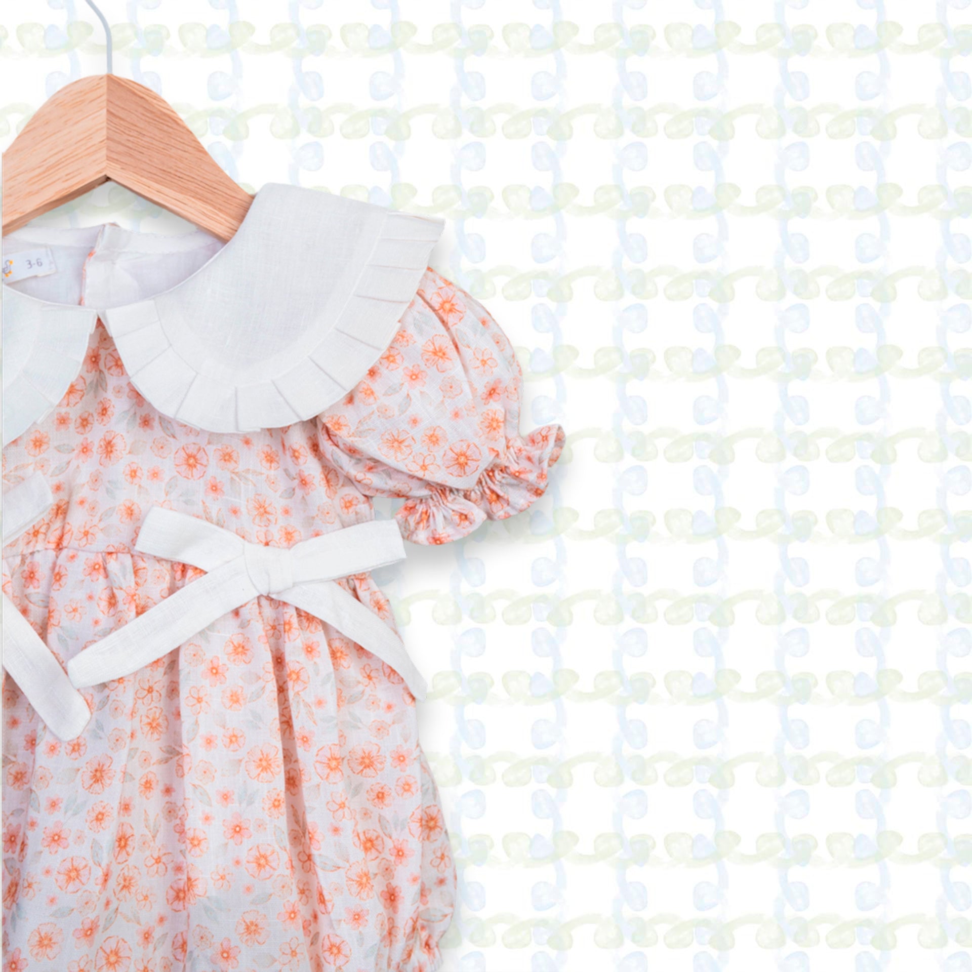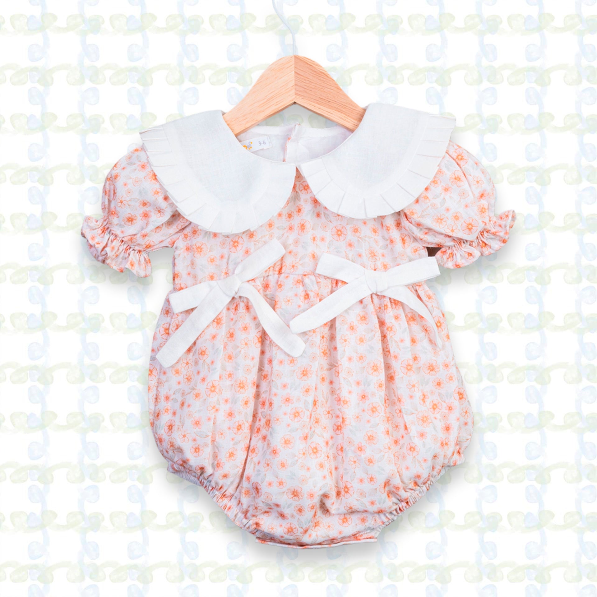 Pelele en lino totalmente forrado en algodón 100% para mayor suavidad y frescura , cuenta con abotonadura para cambio de pañal, manga estilo muñeca.